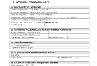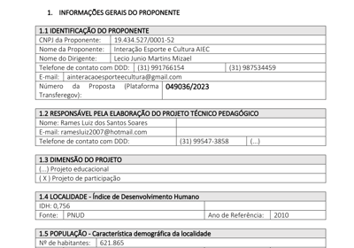 Projeto: INTERAÇÃO ESPORTE E CULTURA, NO MUNICÍPIO DE CONTAGEM/MG