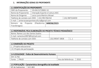 📌 Projeto: Interação Esporte e Cultura (MROSC)