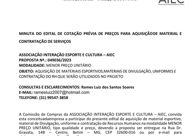 A Associação Interação Esporte e Cultura – AIEC, em conformidade com a Lei nº 13.019/2014 (Marco Regulatório das Organizações da Sociedade Civil – MROSC), reafirma seu compromisso com a transparência na gestão dos recursos públicos e privados que viabilizam nossas atividades esportivas e culturais.